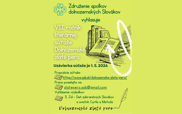 Literárna súťaž Dolnozemské zlaté pero vstupuje do svojho siedmeho ročníka. Vyhlasuje ju Združenie spolkov dolnozemských Slovákov, ktoré zastrešuje štyri dolnozemské spolky