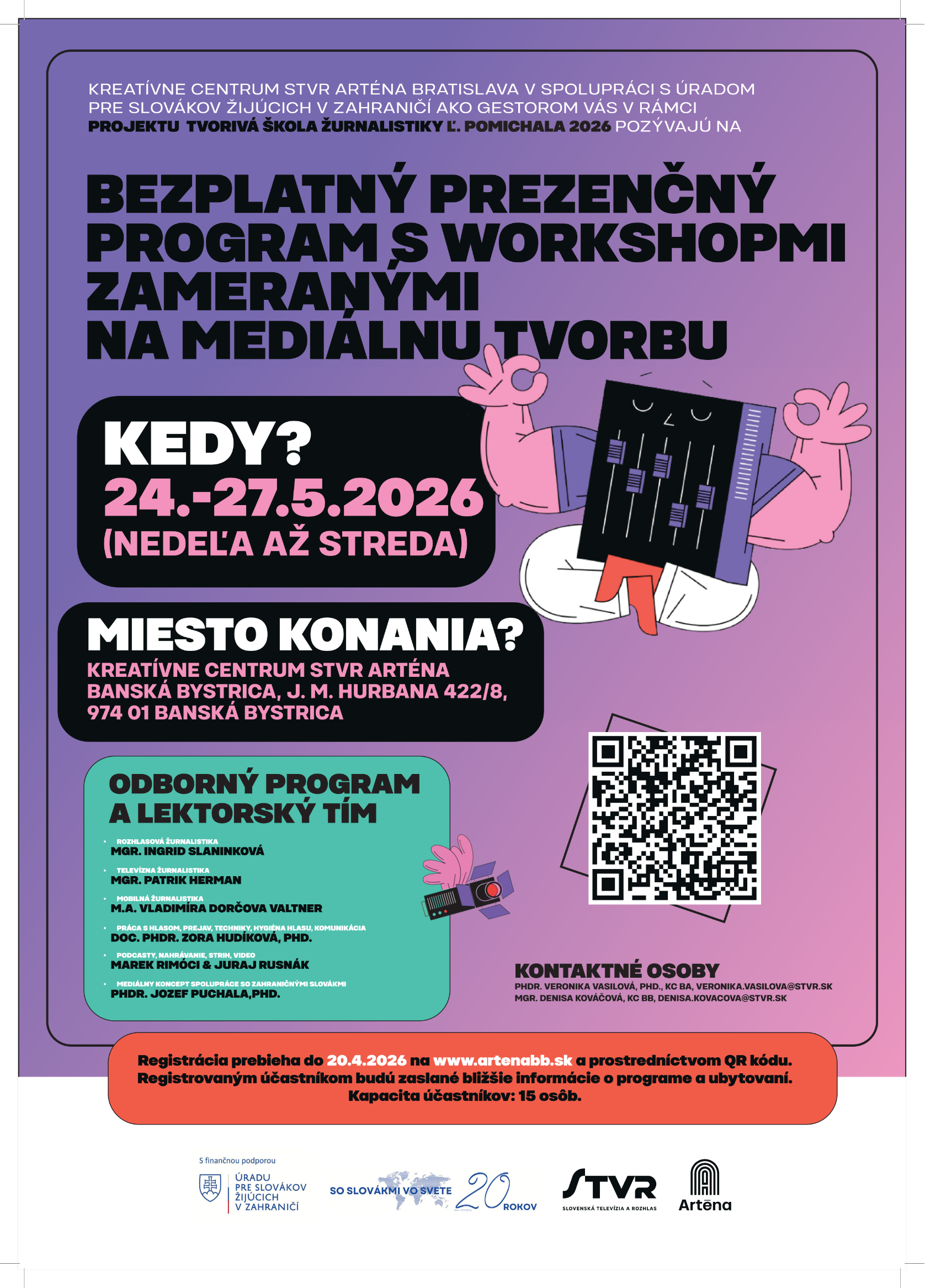 • Registrácia: artenabb.sk a prostredníctvom QR kódu v termíne do 20.4.2026